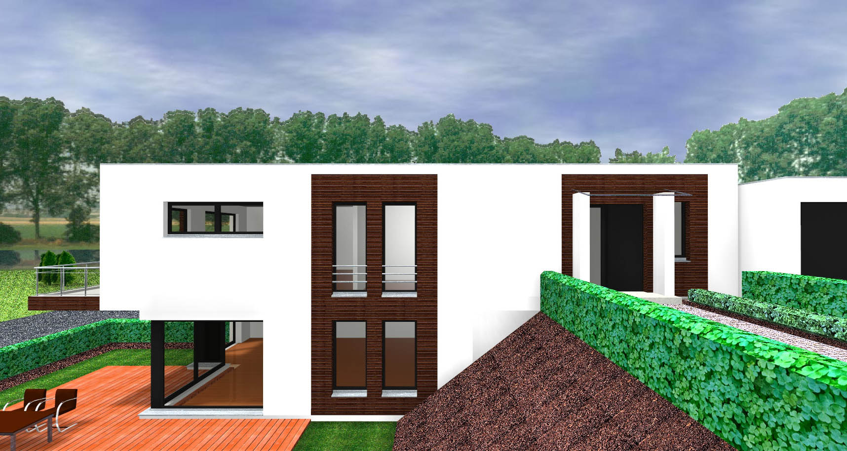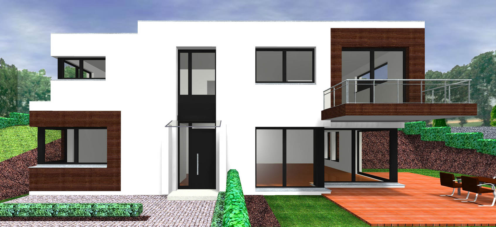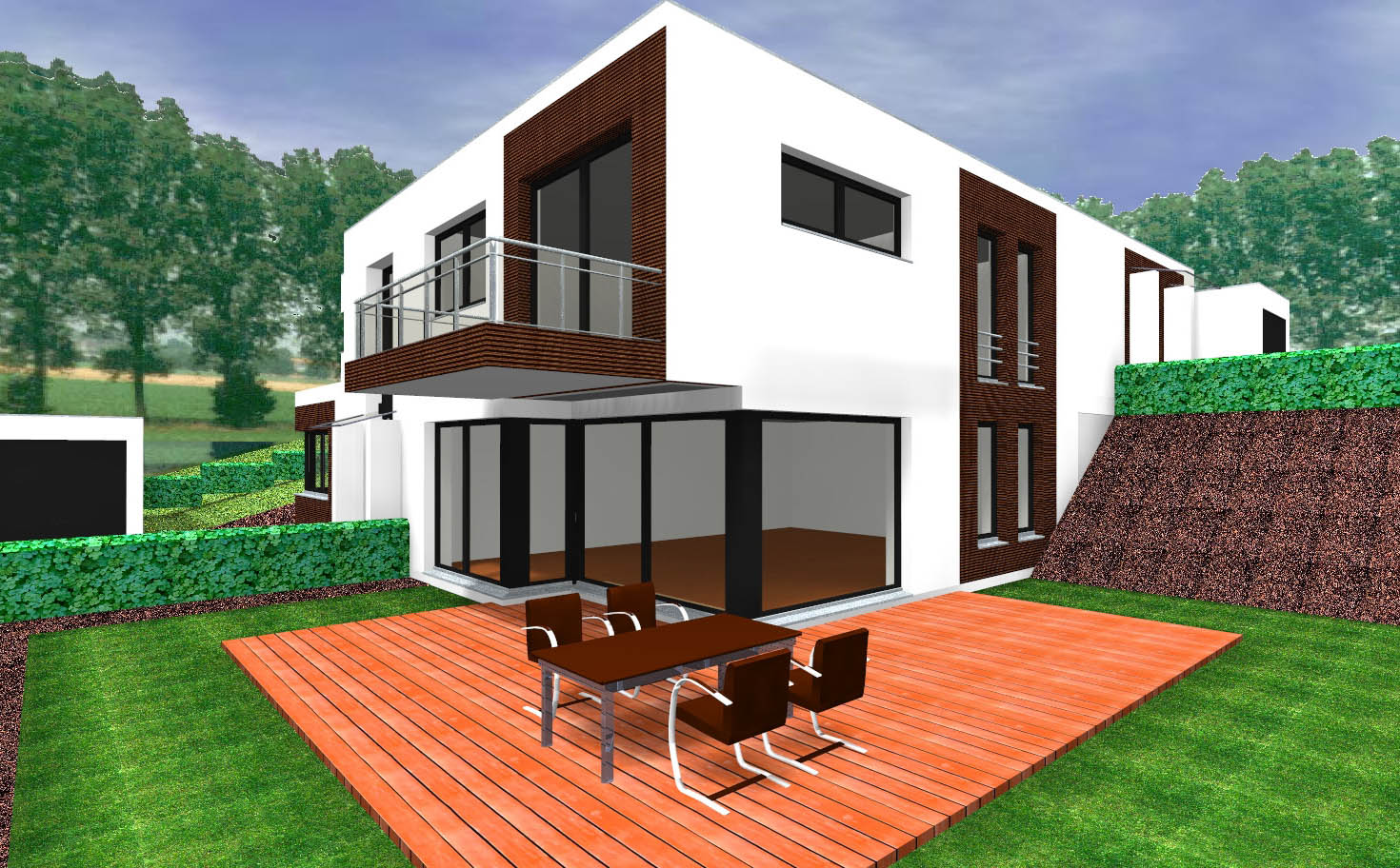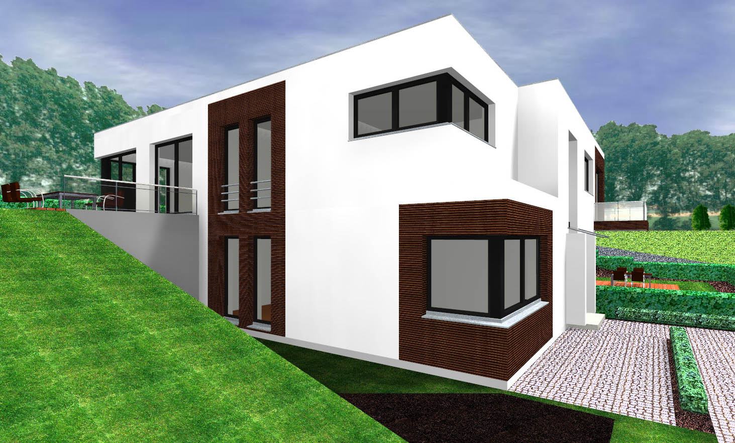 Doppelhaus im Bungalow Stil in Hanglage, mittel